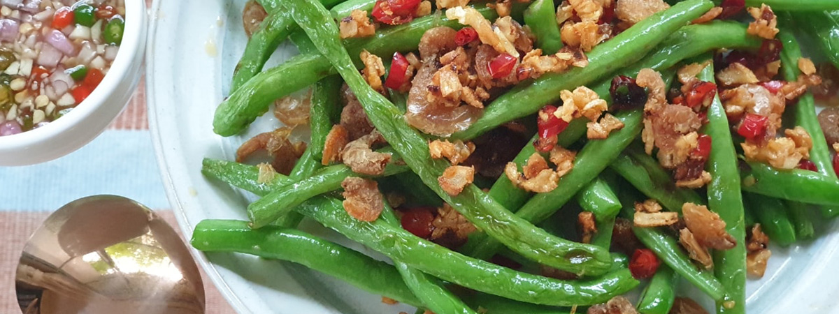 ผัดถั่วแขกผัดพริกเกลือกับกุ้งแห้งทอดกรอบ..ฟินเลยจ้า