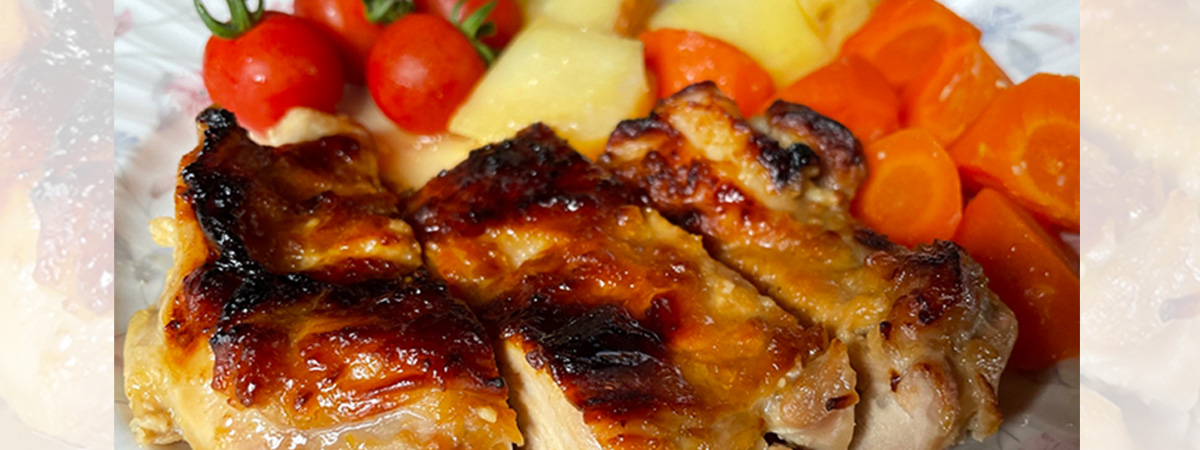 เอาเข้าเตาอบ เราเลือกแบบสตีมซึ่งก่อนหน้านี้ไม่เคยสนใจเลย จนกระทั่งน้องเค้ามาบอกให้ที่บ้าน ถึงจะใช้เป็น ใช้เวลาอบประมาณ 30 นาที เราก็จะได้ไก่อบหมักมิโสะรสบ๊วยมารับประทานอย่างอร่อยเลยค่ะ หนังไก่มีรอยไหม้เยอะ เลือกตัดออกไป