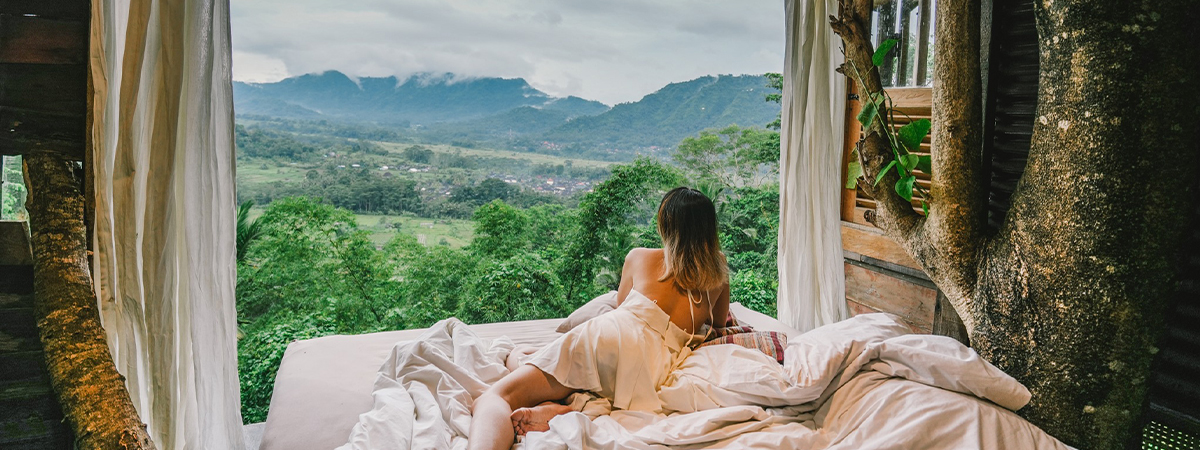และอีกหนึ่งความตื่นเต้นของการมาบาหลีคือการได้หาที่พักดี ๆ ไว้ถ่ายรูปสวย ๆ อวดชาวโลกนี่แหละ และสำหรับที่พักที่เราเลือกก็เป็นบ้านไม้ไผ่บนเนินเขาสุดแสนจะไพรเวทแห่งนี้ ความพิเศษของที่นี่คือสามารถรับนักท่องเที่ยวได้เพียงวันละ 1 กลุ่มเท่านั้น จึงรับประกันได้ว่าจะไม่มีใครมารบกวนเวลาส่วนตัวของเราได้แน่นอน