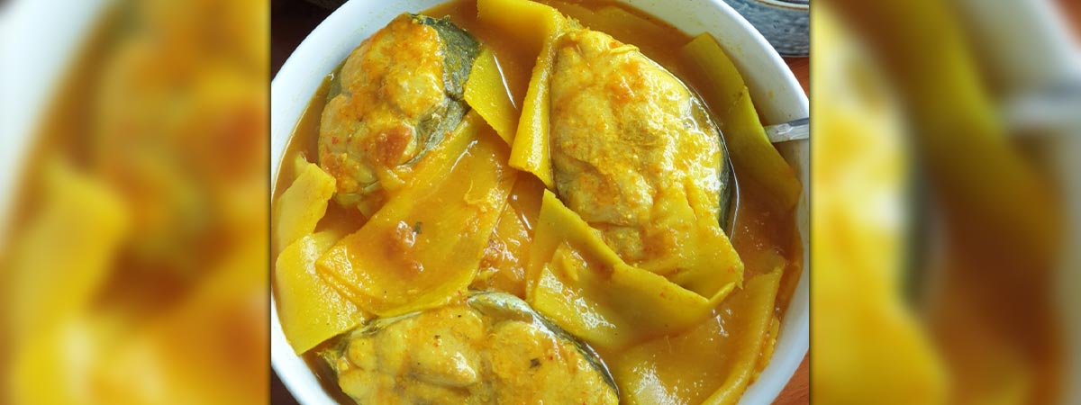 - เมื่อน้ำแกงเดือดอีกครั้ง ใส่เนื้อปลาลงไป (ห้ามคน) จนเนื้อปลาสุก ชิมรสชาติอีกครั้งเมื่อได้ที่แล้ว ตักใส่ชามได้เลย